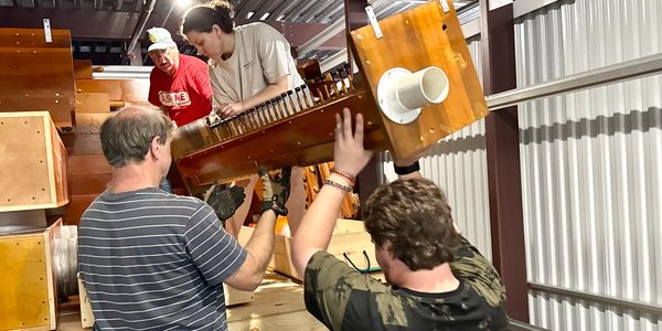 What followed was a true community effort. Over several weeks, dedicated volunteers carefully cataloged, disassembled, and transported the organ with great care and respect for its craftsmanship and history. We are incredibly grateful to the City of McKinney for their partnership, flexibility, and hands-on support throughout the process. A special thank you to Jim Pitts, Joshua Rutherford, Les and Paula Marshall, Trey Concilio, Robert Brown, Camryn Thane, Brad King, and the many friends and family members—including Austin King, Danny Brooke, Will, and Teran—who gave their time, strength, and heart to this effort. We are also deeply thankful to the family at Amy’s Attic Storage for their generous donation of storage space, ensuring the organ is safely preserved during this transition.